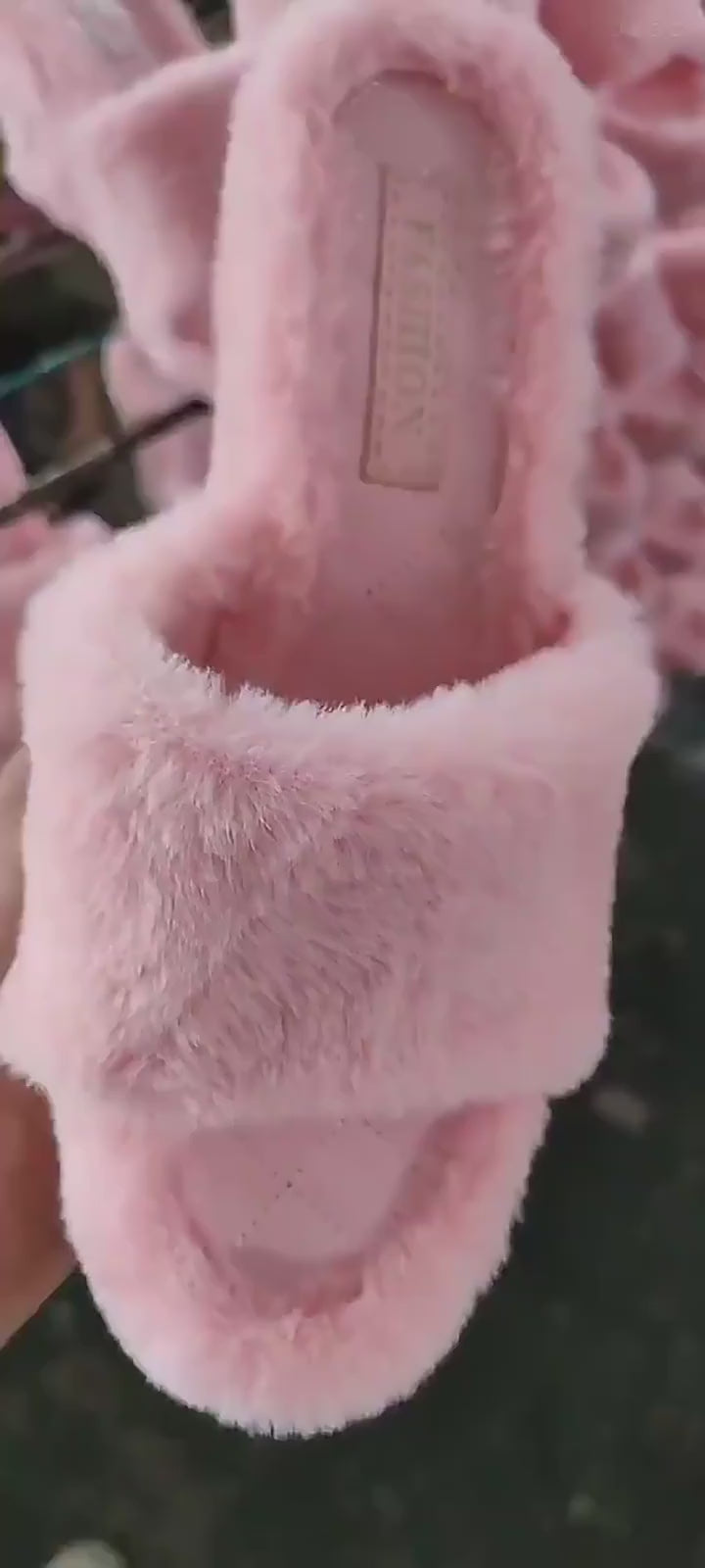 Platform slippers all in soft and warm synthetic hair, heel height 11 cm. In many colors also spotted.