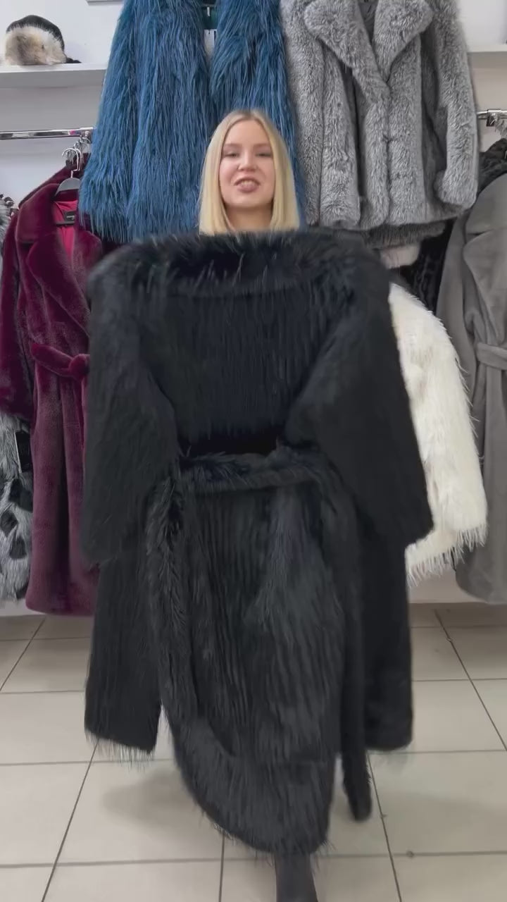 Long fur, high-quality eco-friendly hair with long and curly hair, with belt at the waist.