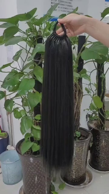 Extensión de coleta con una práctica goma elástica, confeccionada en cabello sintético de alta calidad, de 81 cm de largo y efecto liso. Puedes usar una o dos para conseguir aún más volumen. Elige el color que más te guste y luce siempre una coleta larga, elegante y con un aspecto impecable. El cabello sintético es de la más alta calidad, resistente a altas temperaturas (hasta 180 grados) e ignífugo, lo que te permite alisarlo con suavidad.