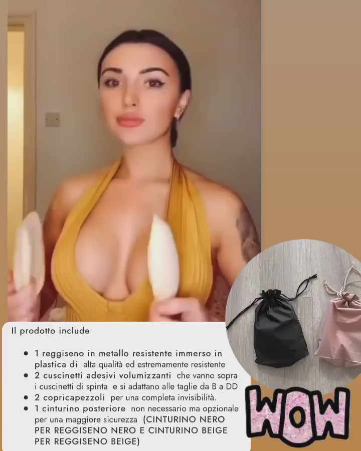 ¡Realzador mágico! Une y realza tus senos como ningún otro accesorio... el aro frontal en forma de U los une con un efecto espectacular. Disponible en negro o nude. Incluye bolsita, cubrepezones, adhesivos voluminizadores y tirante trasero.