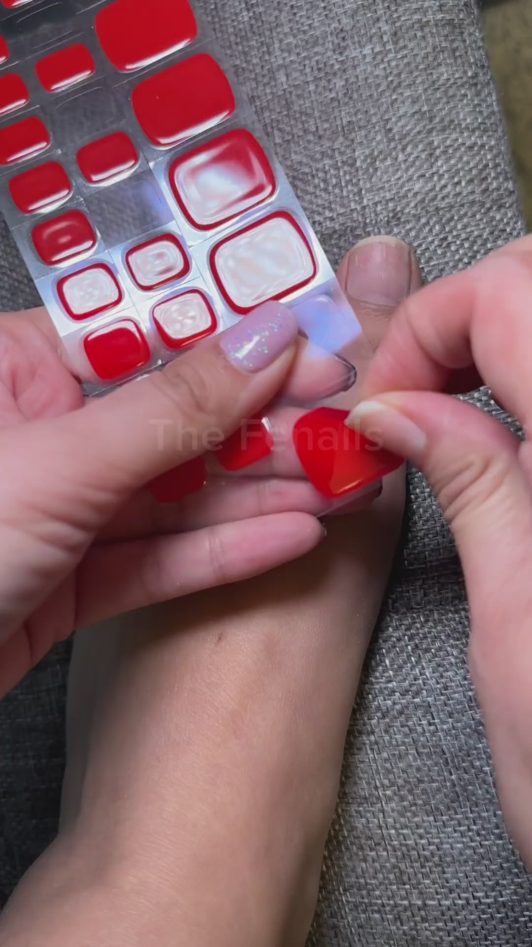 2) Retira la película protectora de la pegatina adecuada para tu uña.