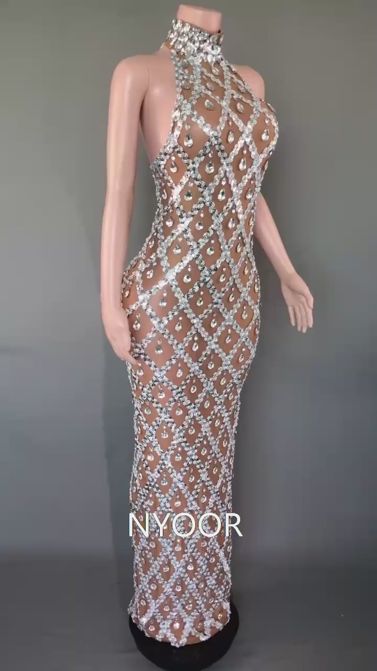Nude diamond luxury dress long