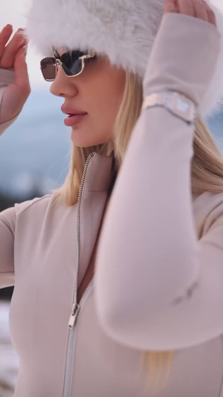Ideale per outfit invernali attivi, après-ski, viaggi o look cozy ma sensuali, è una tuta che unisce estetica minimal e vestibilità performante.